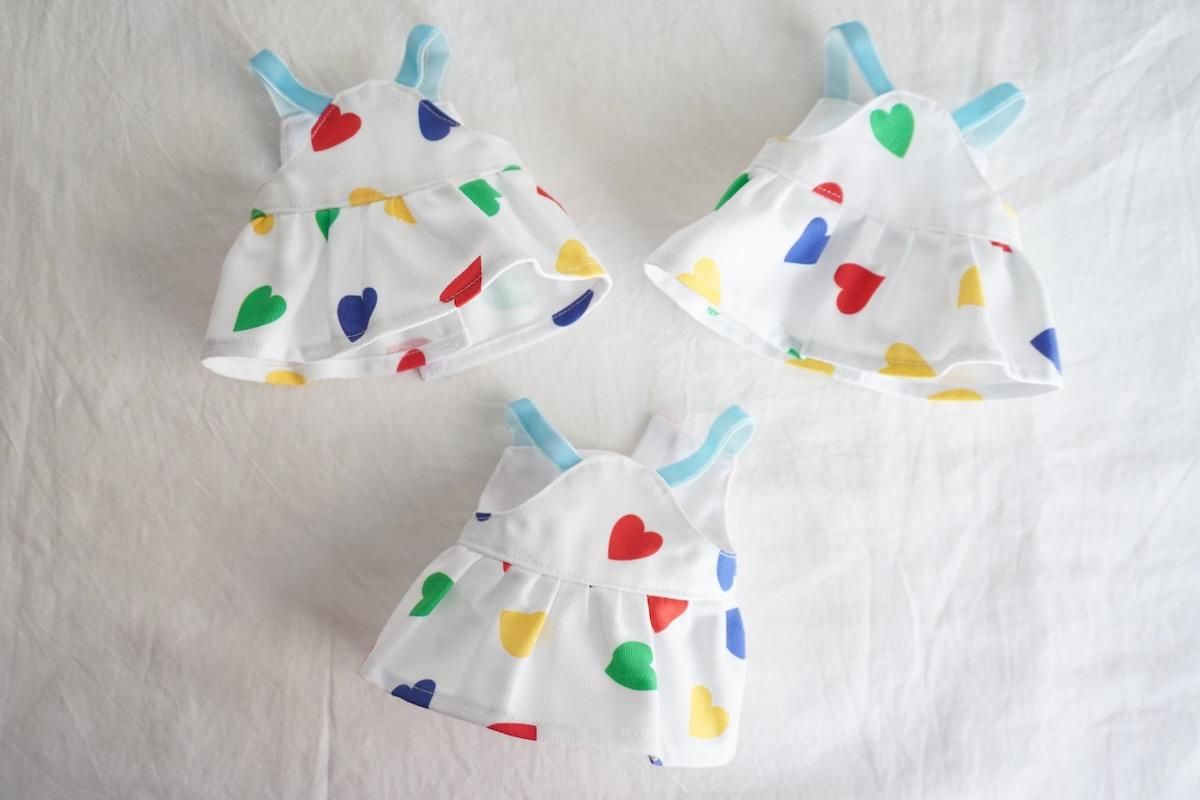 Sophieオリジナルファブリックで製作したぬいぐるみサイズのワンピースが入荷しました。SingちゃんやチムたんSサイズのぬいぐるみが着れるサイズ感のワンピースです。マジックテープなので着せやすいですよ。