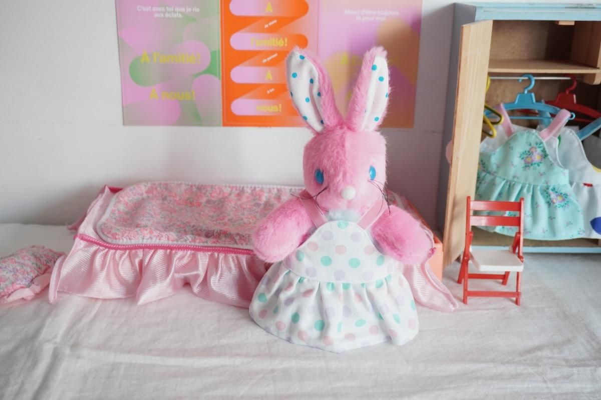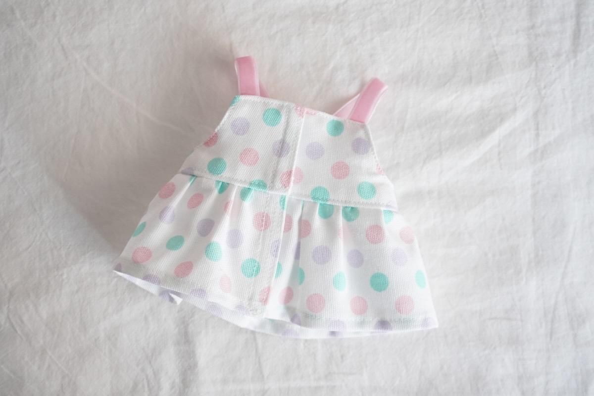 Sophieオリジナルファブリックで製作したぬいぐるみサイズのワンピースが入荷しました。SingちゃんやチムたんSサイズのぬいぐるみが着れるサイズ感のワンピースです。マジックテープなので着せやすいですよ。