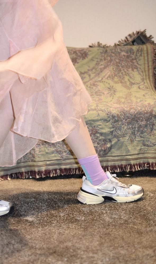 パープルベースにミント、シルバーラメのバックラインが足元にさりげないアクセントを効かせてくれます。
