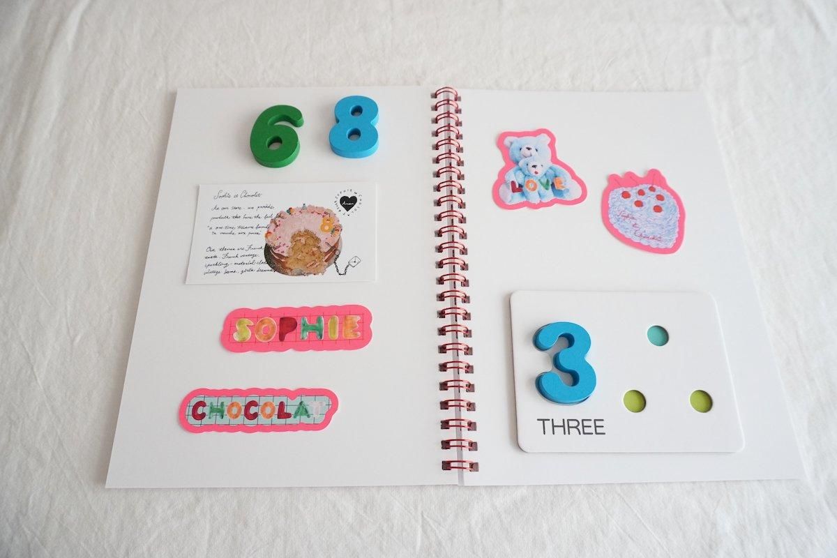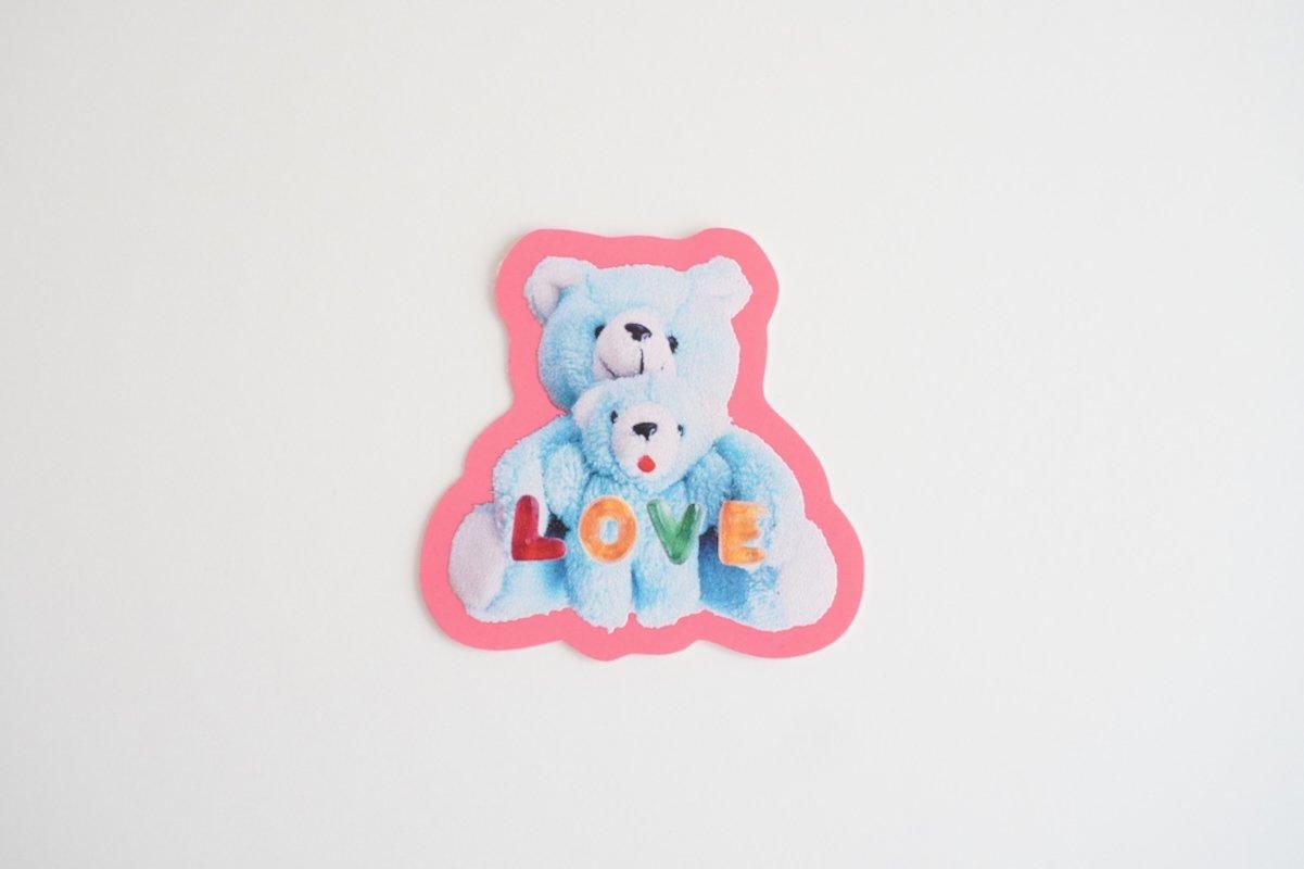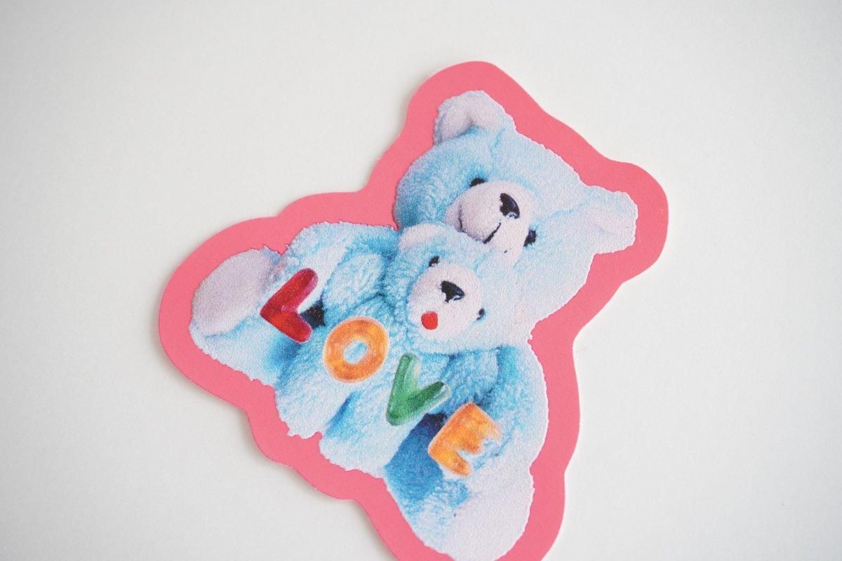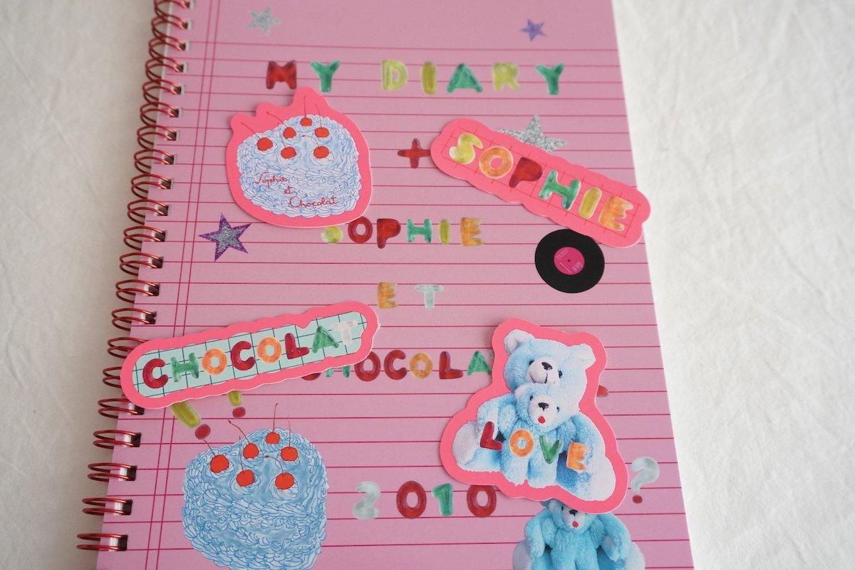 ネオンピンクベースにChocolat(グミ)がプリントされたオリジナルステッカー。