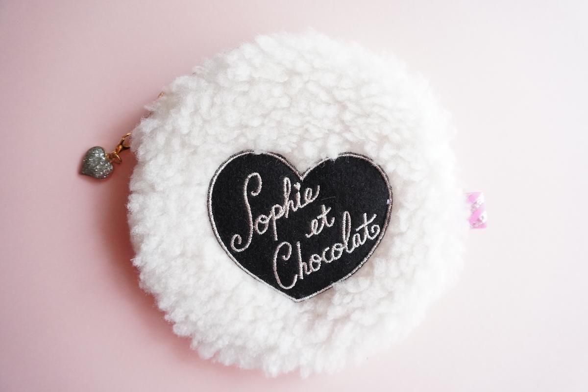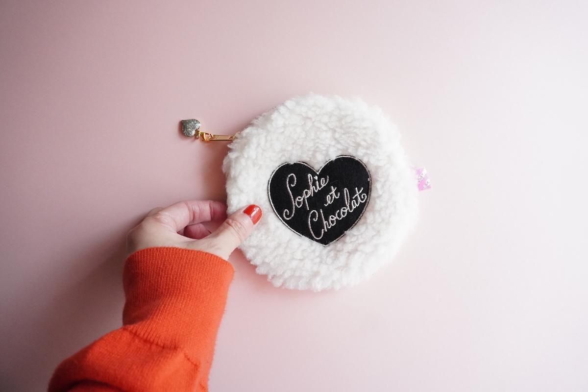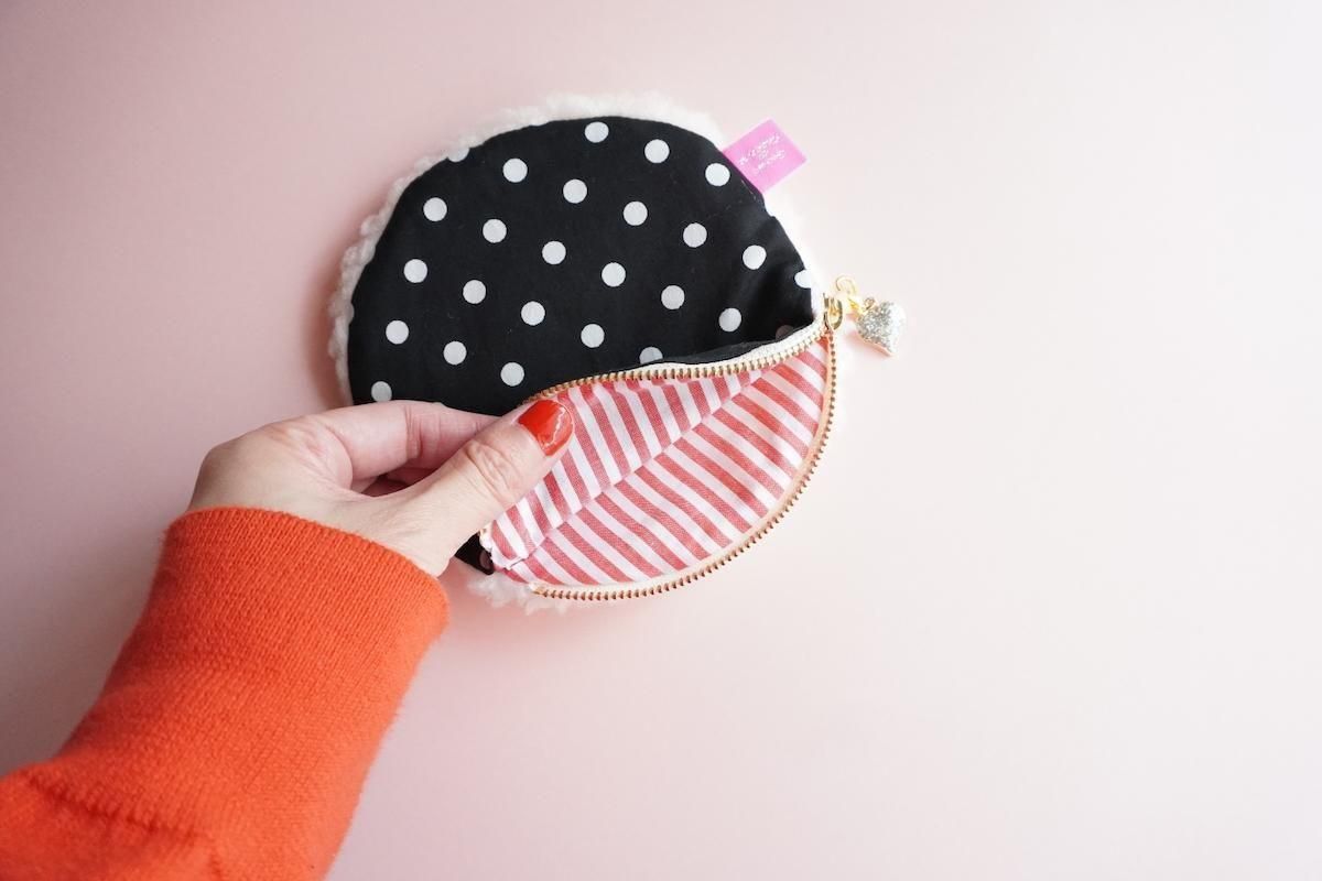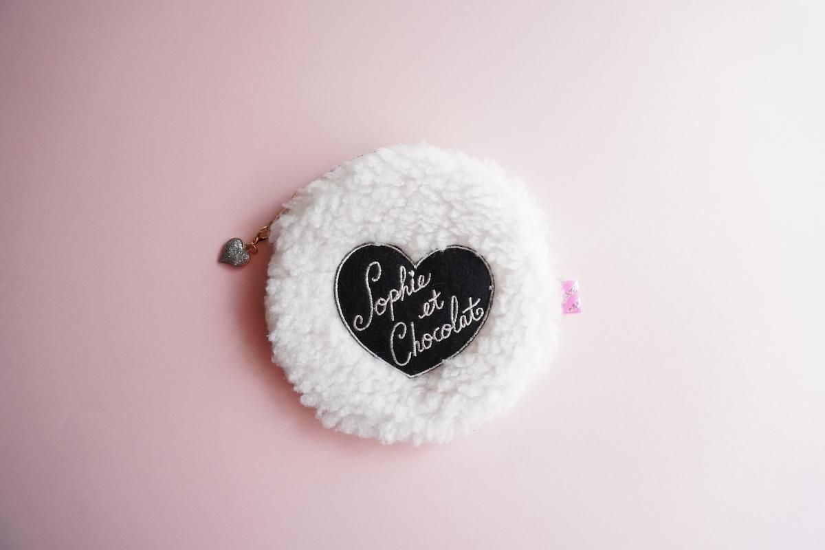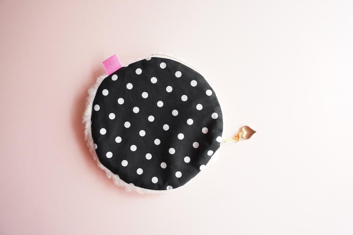 シープボアファブリックに、ハートワッペンがトッピングされた大人可愛いサークルポーチ。