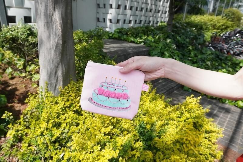 デザイナーが描いたCAKEのキャンバス画がポーチになりました。