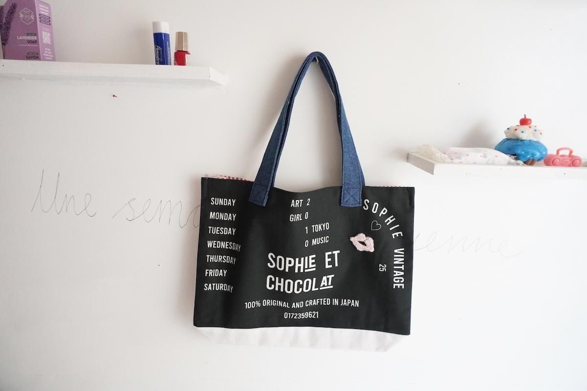 「Every day Sophie」がテーマのオリジナルの巾着バッグ。