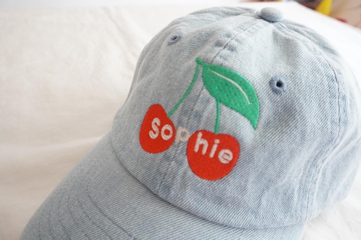 「CHERRY x Sophie」の刺繍が施されているデニムCAPが入荷しました。