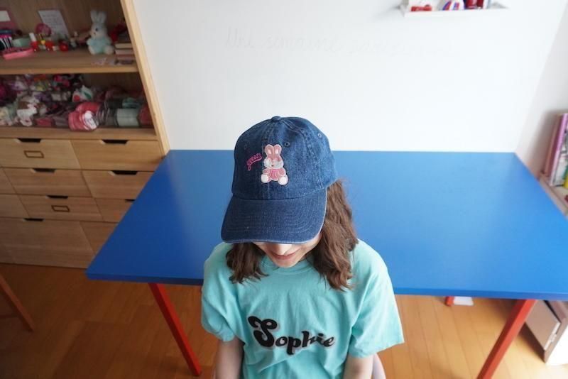 デニムベースにバニーのYeees! Bunny刺繍がラブリーなデザインに。