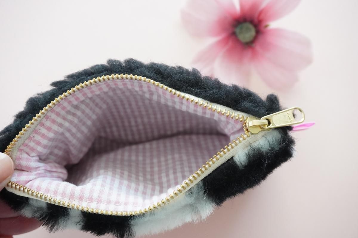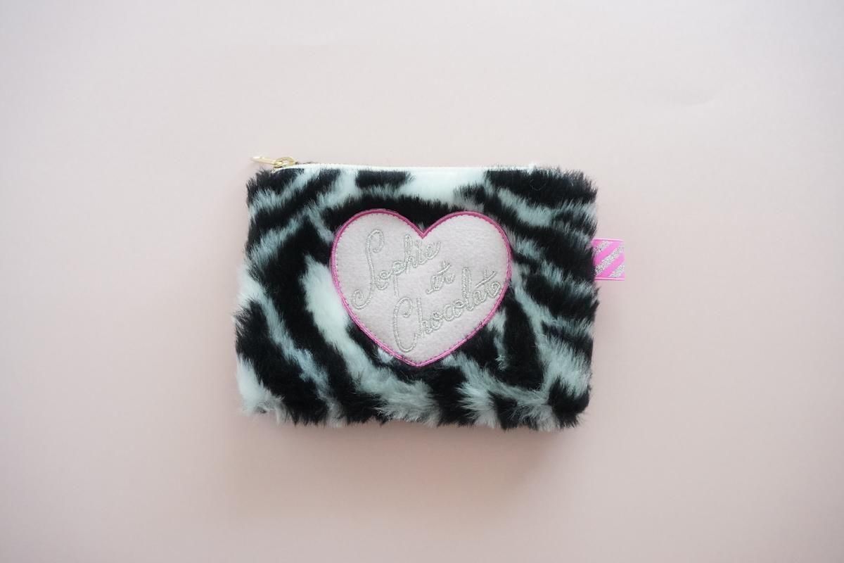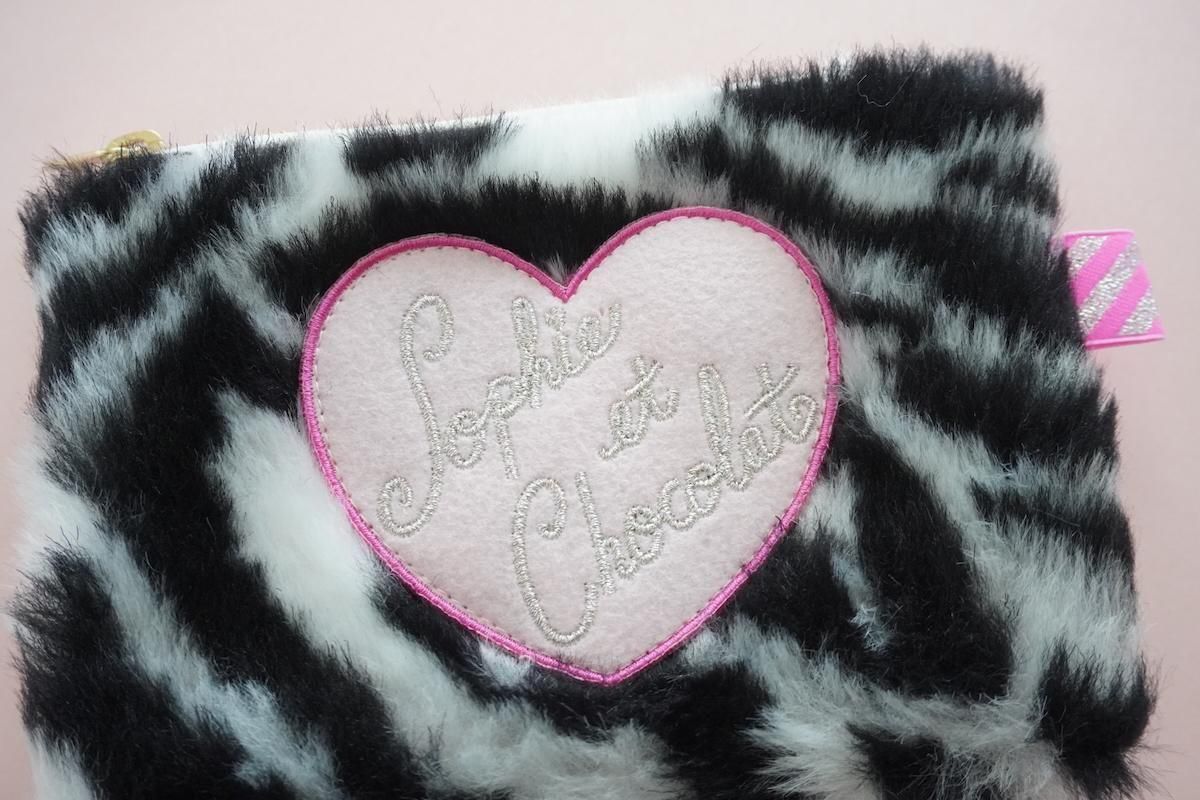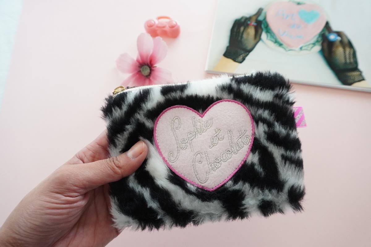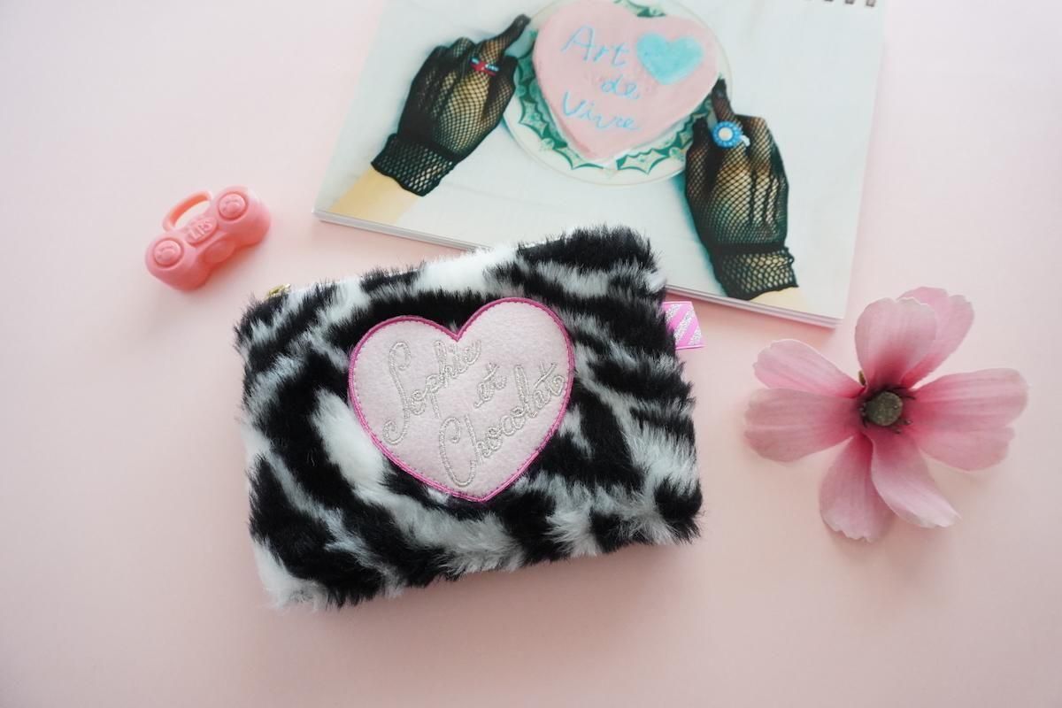 レオパードのファーにオリジナルワッペンが可愛いミニポーチ。