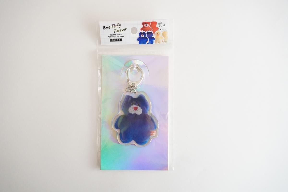 mojojojoさんのぬいぐるみ写真をそのまま持ち歩ける両面プリントのアクリルキーホルダー。