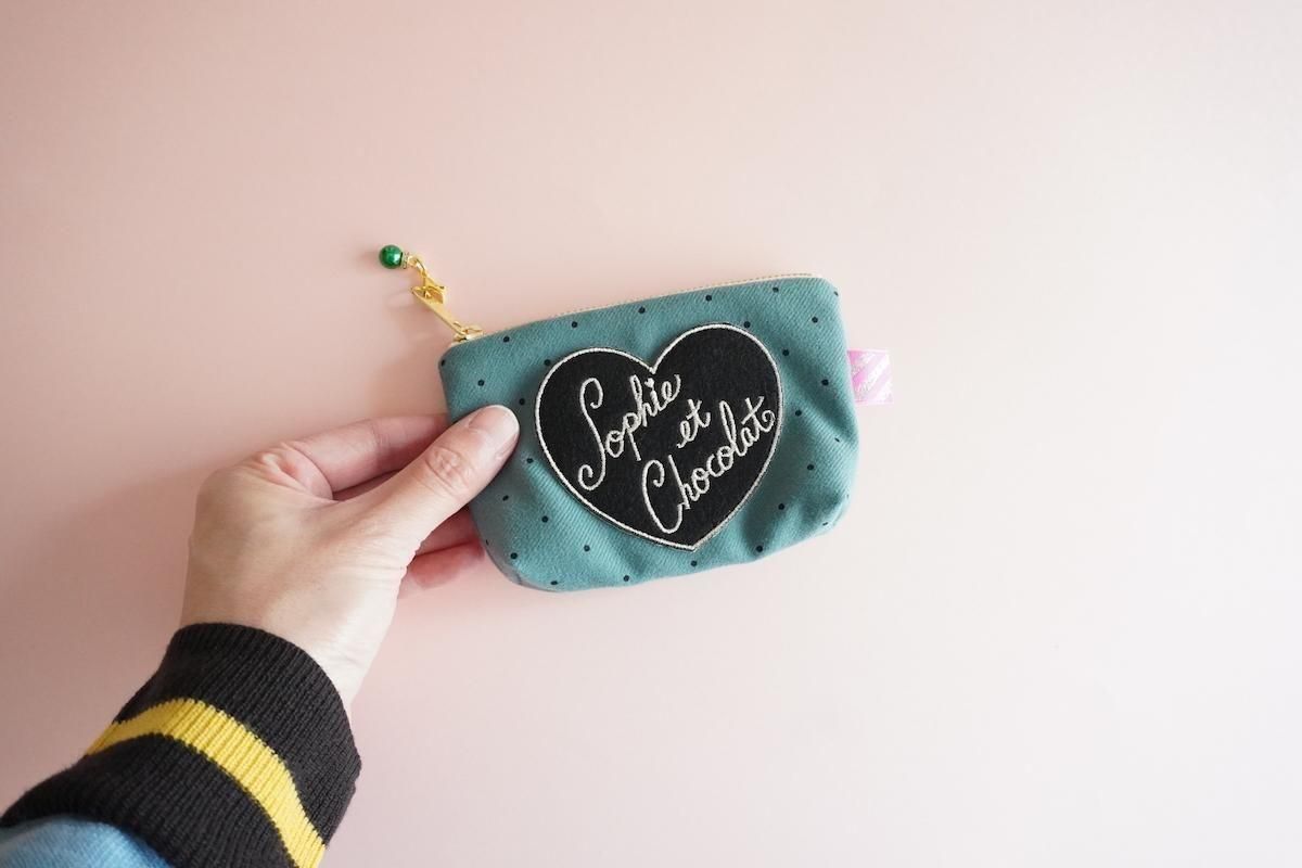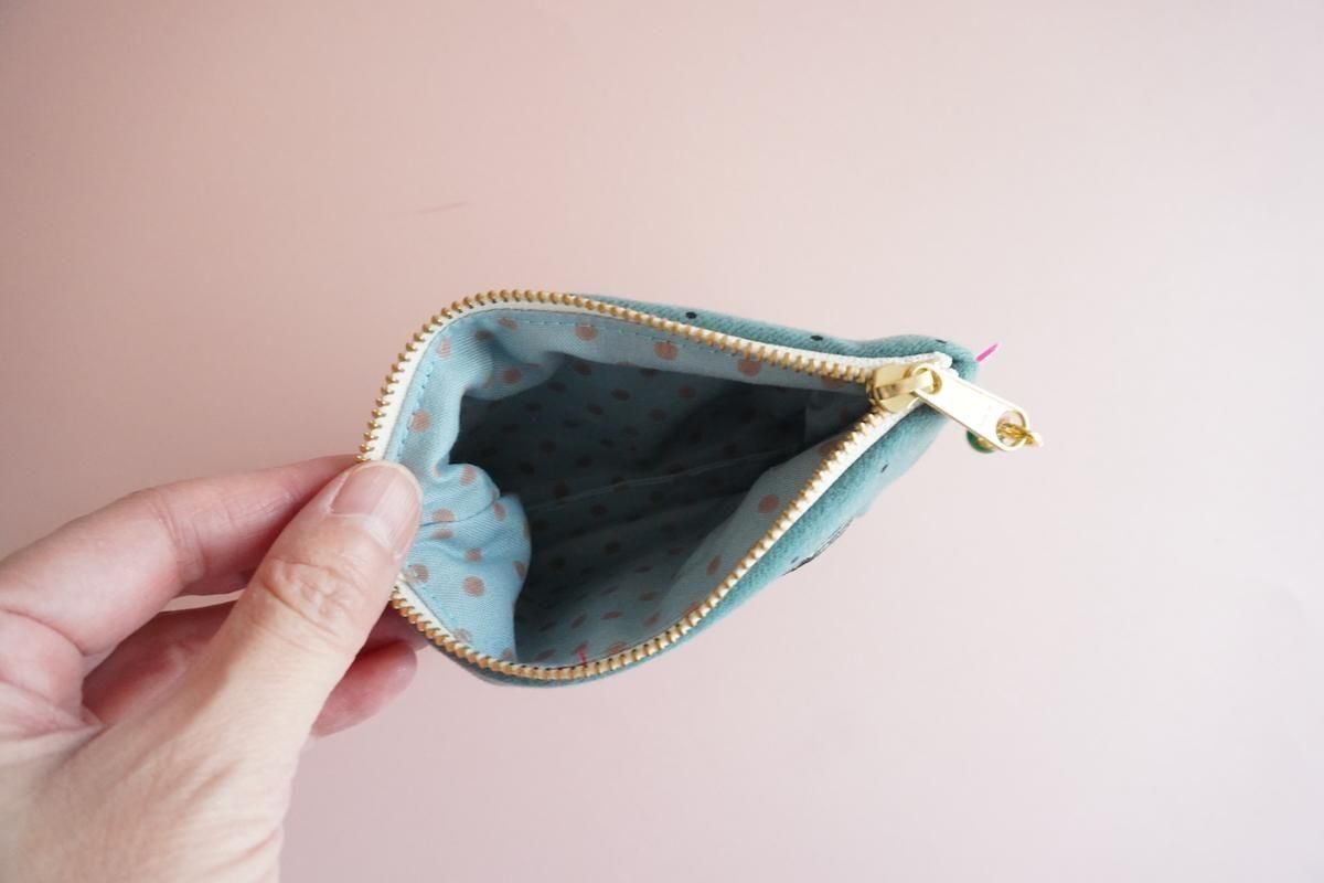 ウール素材のファブリックでミニポーチを作りました。