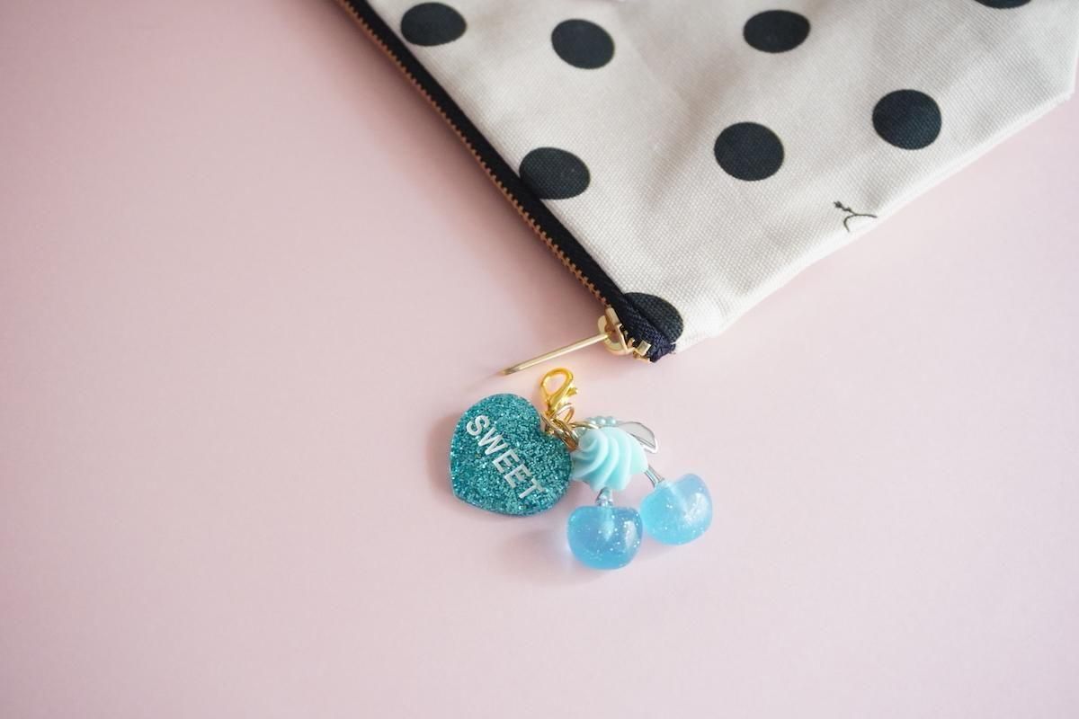 バッグやポーチなど、お気に入りのアイテムのアクセントにお使いいただけるチャーム。付けると気分がUPしますよ。