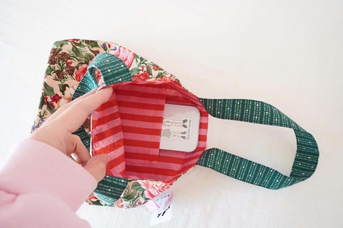 お財布、スマホが丁度よく入るサイズ感のトートバッグです。