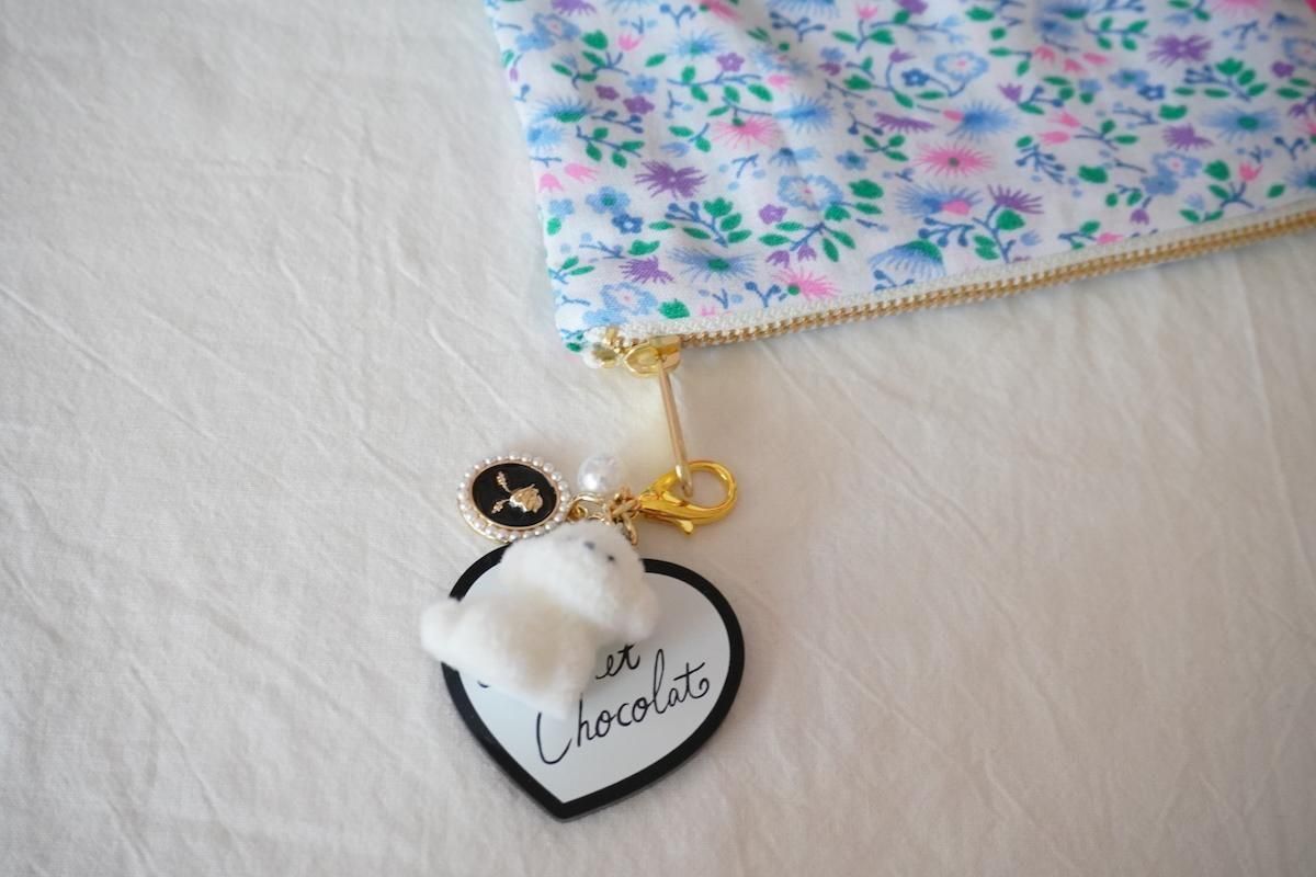 バッグやポーチなど、お気に入りのアイテムのアクセントにお使いいただけるチャーム。付けると気分がUPしますよ。