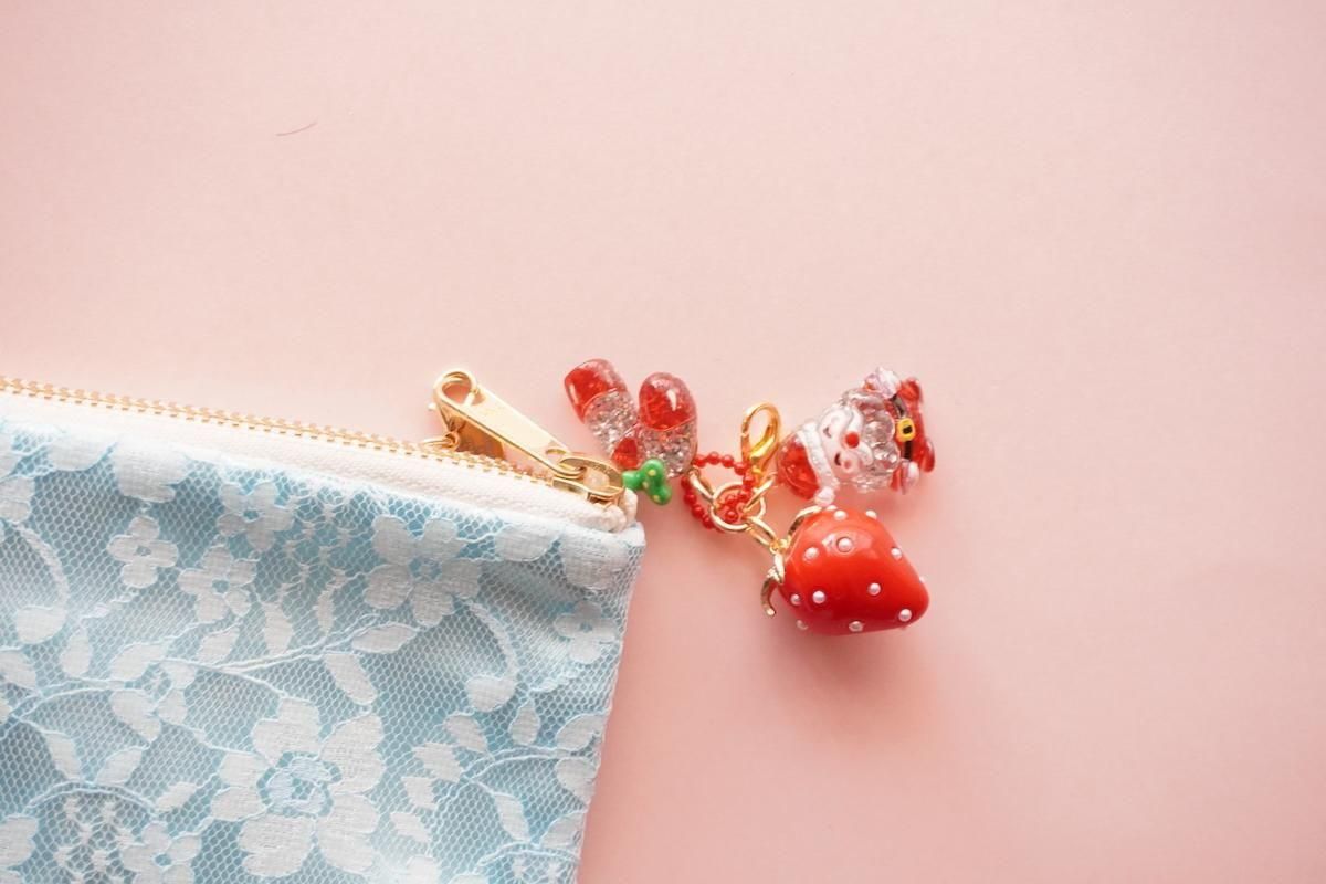 バッグやポーチなど、お気に入りのアイテムのアクセントにお使いいただけるチャーム。付けると気分がUPしますよ。