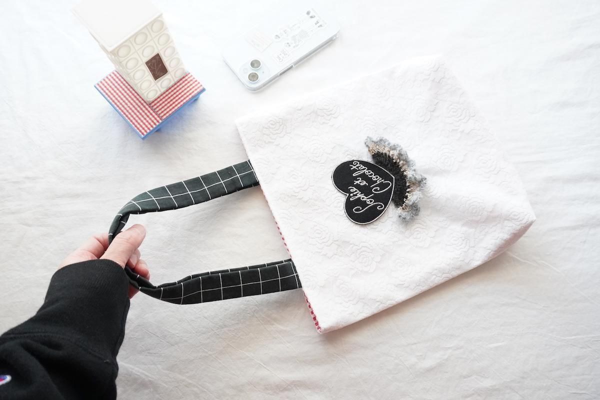 ホワイトレースバッグはこれからのシーズン、エアリー感をプラスすることができるアイテムのひとつ。手編みのレースをプラスしてGirly感がUPしました。